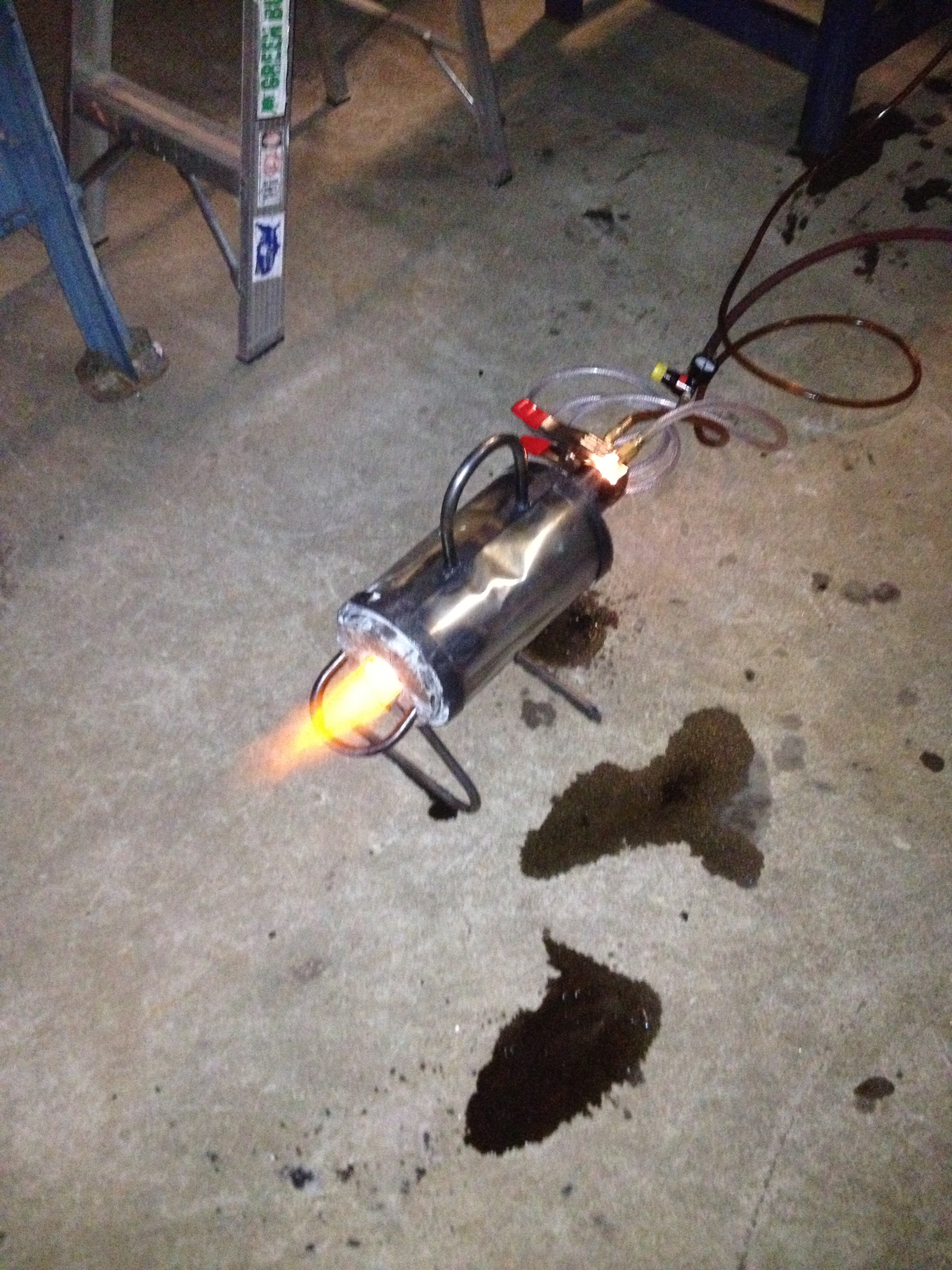 This burner represents my first attempt at a high-temperature heat source for blacksmithing in California. In my home state of Pennsylvania coal is king, but out here getting coal is nigh impossible. I decided to use waste oil from restaurants as the fuel because it is omnipresent, more energy-dense and safer than propane, and it is a renewable resource.